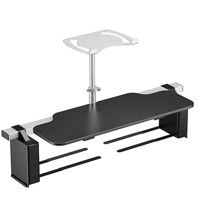 There are several desk attachments currently on the market but all of them are an ergonomic and visual nightmare. Our dual platform and fully adjustable design allows for proper posture as well as wrist and shoulder alignment which reduces neck, shoulder and back pain. It also lets you look Zoom in the eye. The only design recommended by both Physical Therapists and Chiropractors!